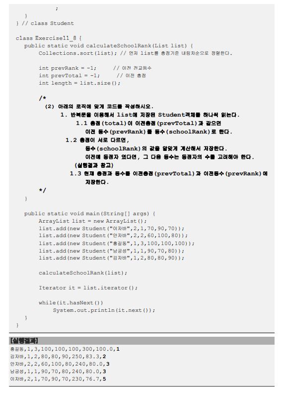 Collections.sort(list); // 먼저 list를 총점기준 내림차순으로 정렬한다.